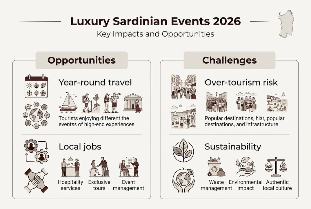| Global visibility for Sardinian culture | Pressure on local infrastructure and services |
