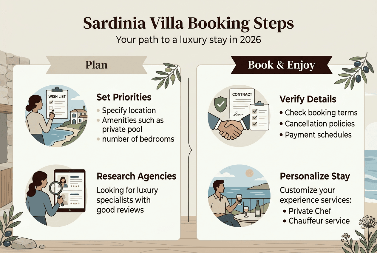 Booking a luxury villa in Sardinia can feel overwhelming when you’re searching for that perfect blend of privacy, authenticity, and breathtaking coastal views. With villa options ranging from modern minimalist retreats to traditional stazzos nestled in the Mediterranean landscape, affluent travelers face a complex decision matrix. This guide walks you through understanding your needs, preparing effectively, executing your booking with confidence, and verifying that your chosen villa delivers the exclusive Sardinian experience you’re seeking. You’ll discover how to avoid common pitfalls and secure accommodations that truly match your vision of an authentic, relaxing getaway.