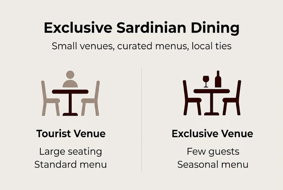 - Genuine Sardinian exclusivity centers on intimate, family-run venues with seasonal menus and personal service.